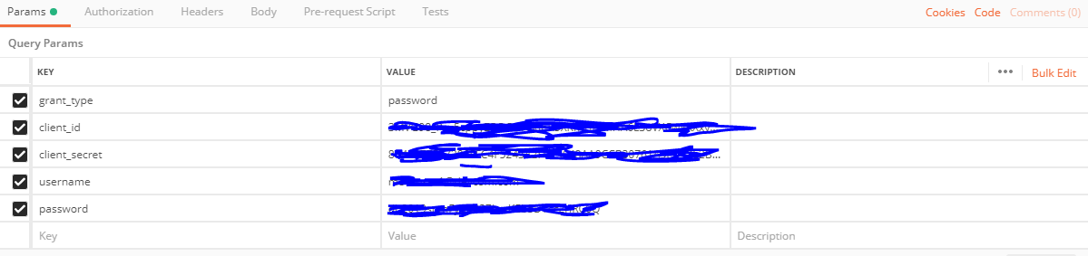 Open Postman -> Create a new tab -> Set a POST service -> Set the following url: https://OUR_ORG_NAME.my.salesforce.com/services/oauth2/token